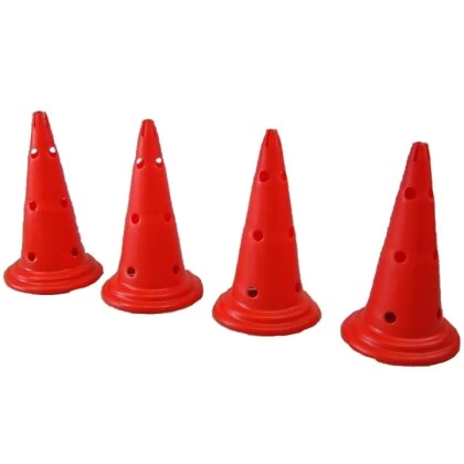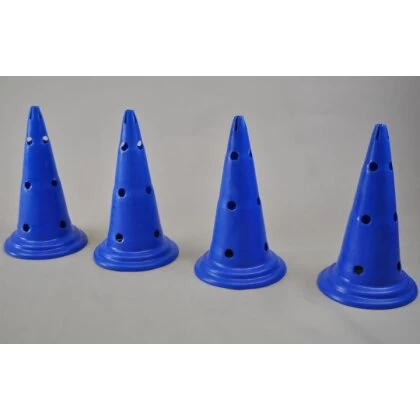 Es handelt sich um sehr stabile Kegel mit 4 mm Wandstärke, d.h. sie haben auch ein gutes Eigengewicht und fallen auch bei eingesteckten Stangen nicht gleich um.