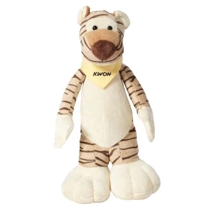 Knuffeliger Tiger mit riesigen Füßen und Halstuch.