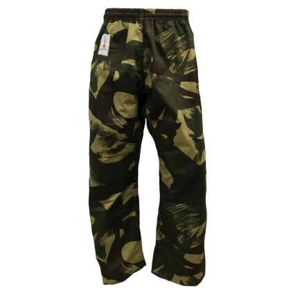 Klassische lange Kickboxhose mit Camouflage Woodland Design.