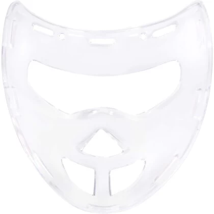 Die Gesichtsmaske aus hartem, unflexiblem Plastik ist passend für viele gängige Kopfschützer.
