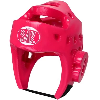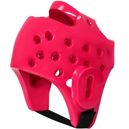Der Kopfschützer ist angelehnt an die Bestimmungen der World Taekwondo Federation / WT in den Farben rot und blau.