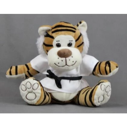 Knuddeliger Plüsch-Tiger mit traditionellen Kampfanzug.